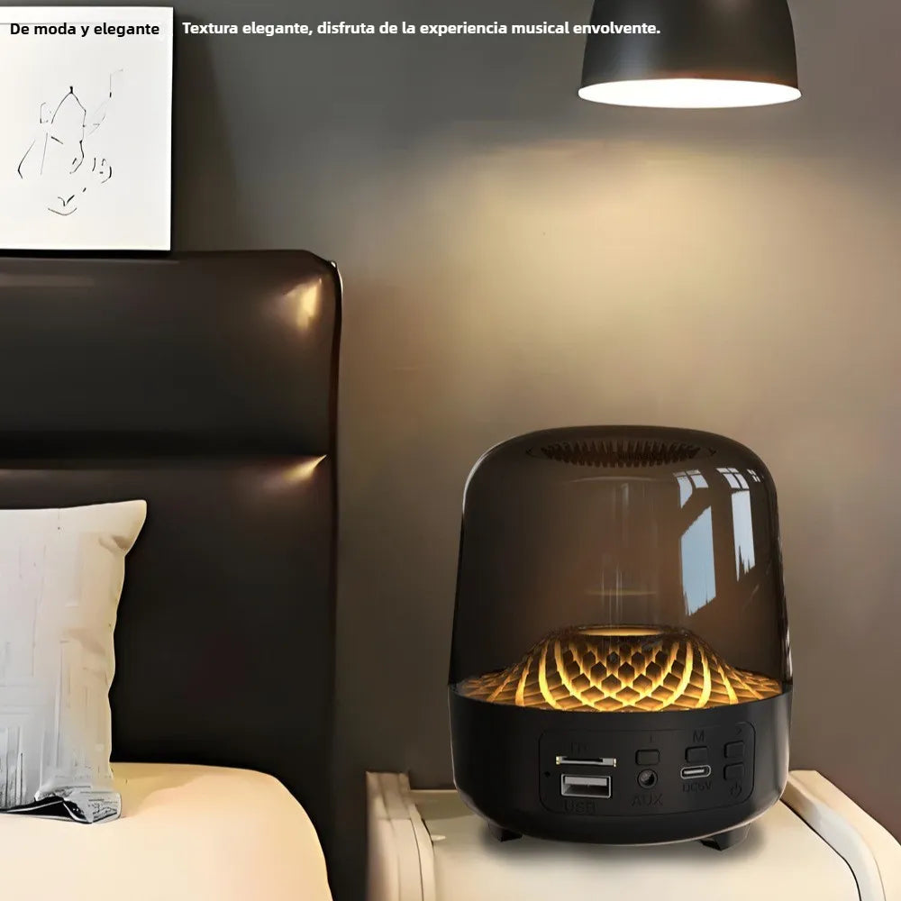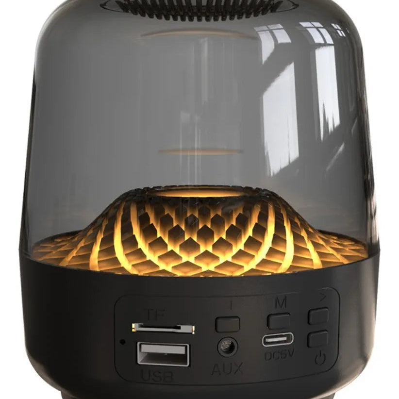 Eleva tu experiencia de audio y crea un ambiente de relajación con la Bocina Bluetooth "Glaze". Este altavoz no es solo un dispositivo de audio, sino también una función de luz nocturna de atmósfera de sueño (Dreamy atmosphere night light function). Con su diseño transparente y efectos de luz giratorios de color azul, es ideal para la mesita de noche o para ambientar cualquier espacio.