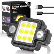 Linterna de Cabeza Recargable (Tipo Minero) que incluye una función magnética o a una Linterna de Trabajo (Work Light) con LED COB y base imantada.