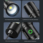 Material: Cuerpo de la linterna fabricado en aleación de aluminio (inferido por la textura y el color negro).