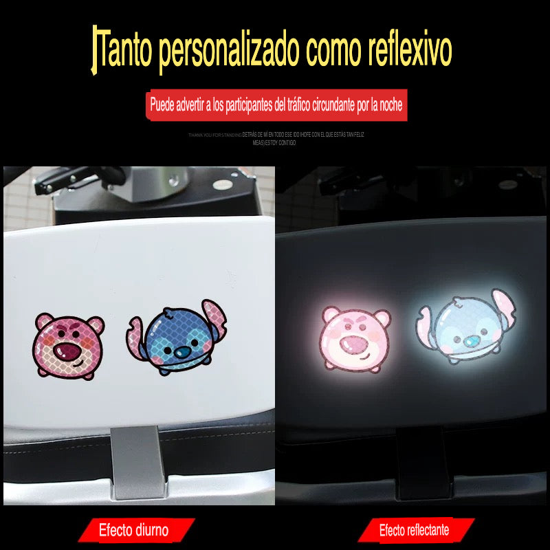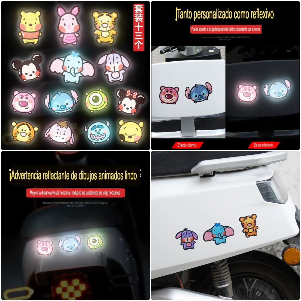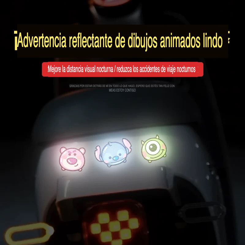 Stickers Reflectantes de Dibujos Animados – Seguridad y Estilo para Motos, Autos y Bicicletas