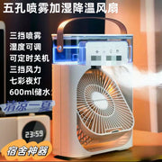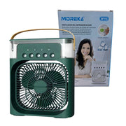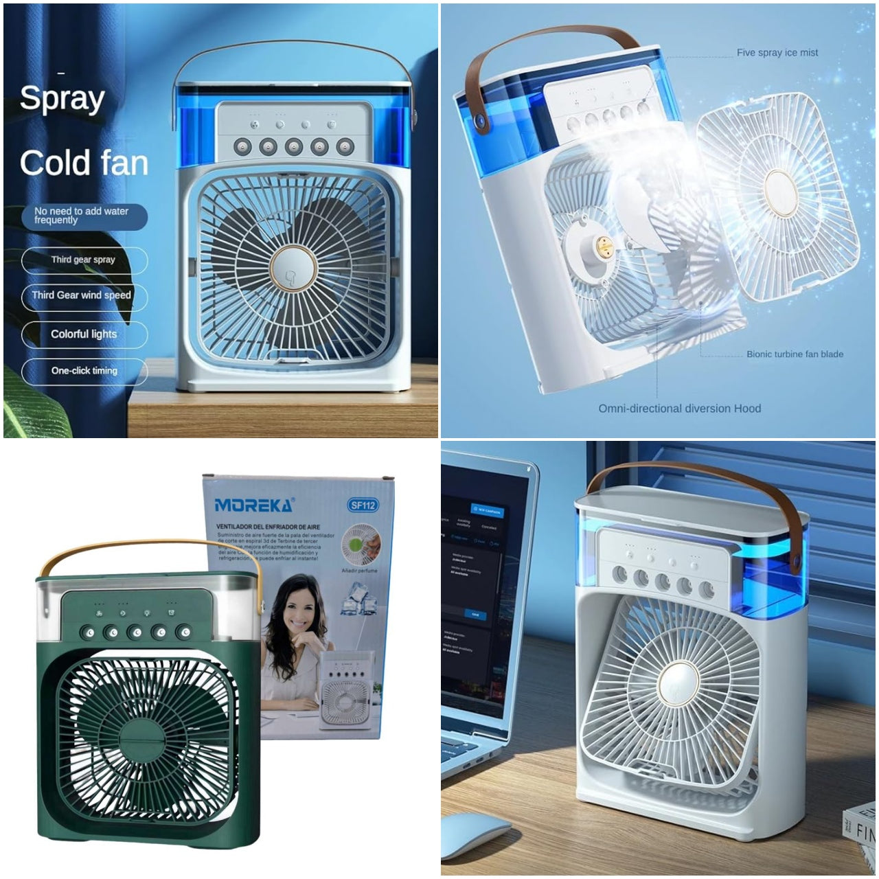 ¡Mantente fresco y cómodo con el ventilador con nebulización y luces LED! Su sistema de spray de agua fría crea una brisa refrescante, ideal para combatir el calor en oficinas, habitaciones, escritorios o cualquier espacio. Su diseño portátil con asa y luces LED decorativas lo hacen un complemento perfecto para el hogar. 🏡✨