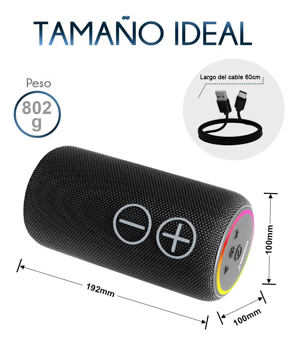 📌 Incluye: Bocina, cable de carga USB-C, manual de usuario