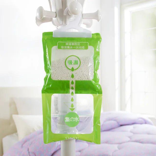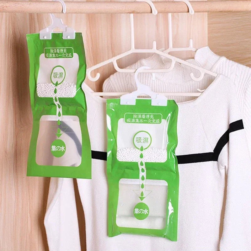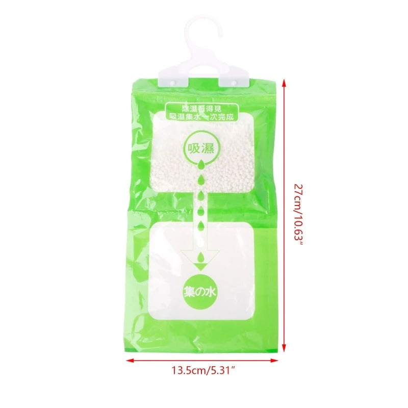 Ideal para eliminar la humedad y el mal olor en clósets, roperos, baños, autos o bodegas. Su diseño colgante con gancho permite colocarlo fácilmente sin ocupar espacio. Contiene perlas absorbentes que capturan la humedad del ambiente y la convierten en agua visible en la parte inferior de la bolsa.