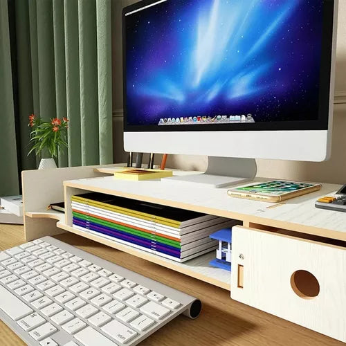 Organizador de Escritorio con Elevador para Monitor – Diseño Multifuncional con Cajones y Espacios de Almacenamiento