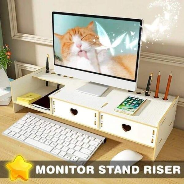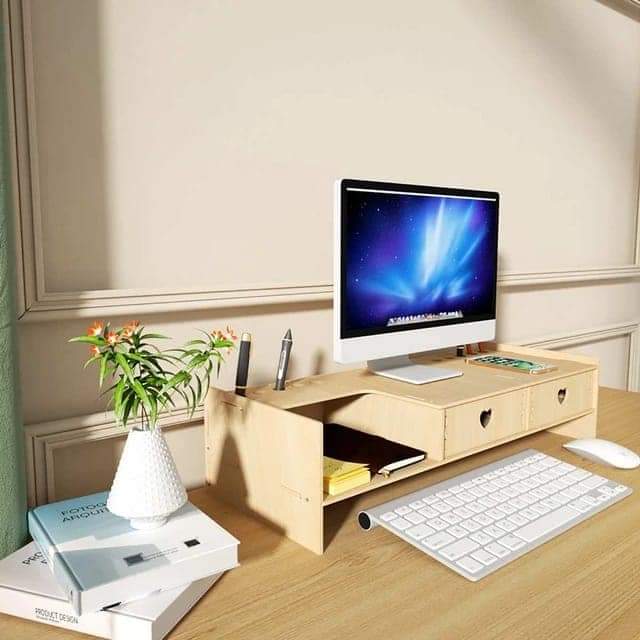 Mejora tu espacio de trabajo con este organizador de escritorio multifuncional, diseñado para elevar tu monitor a una altura ergonómica, reduciendo la fatiga visual y el dolor de cuello. Con un diseño elegante y práctico, este soporte te ayuda a mantener tu escritorio ordenado y optimizado.