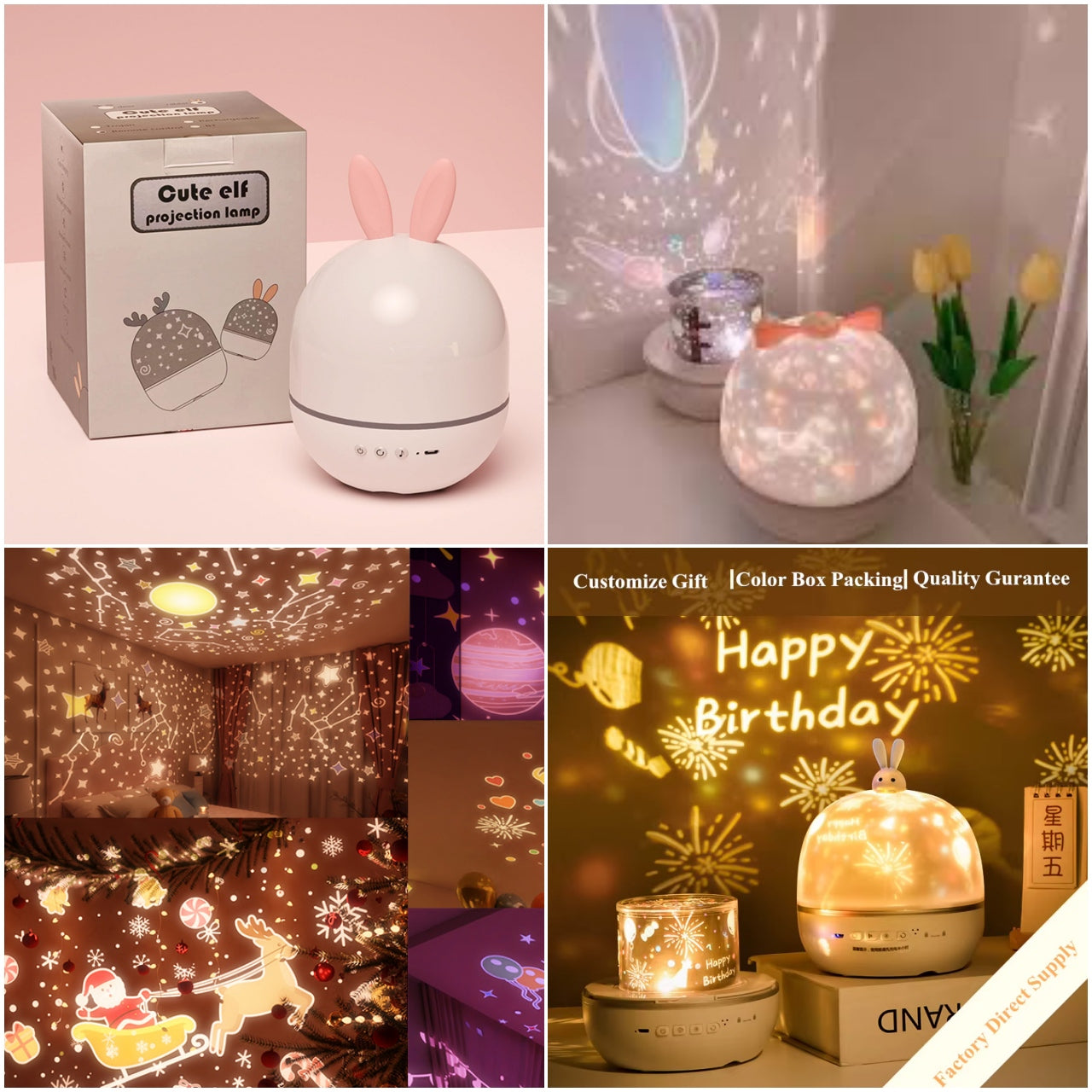 Transforma cualquier habitación en un mundo de fantasía con la Lámpara Proyector Cute Elf. Con más de 10 temáticas diferentes, crea ambientes únicos para cada ocasión, desde cumpleaños hasta noches estrelladas. Su diseño compacto con orejitas de conejo la hace adorable y funcional, perfecta como regalo o decoración.