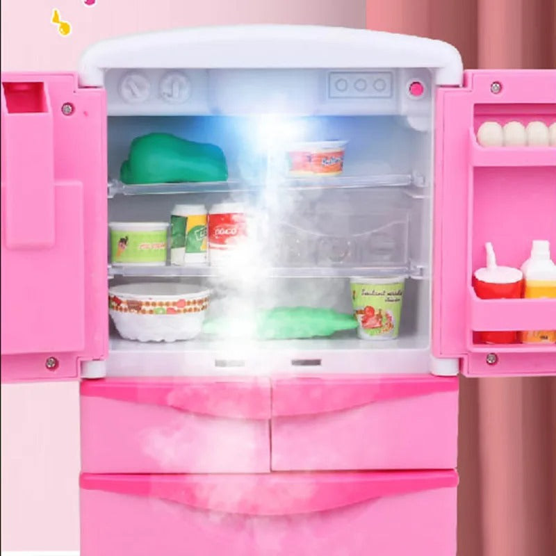 🧊 REFRIGERADOR DE JUGUETE INTERACTIVO – LUCES, SONIDO Y NIEBLA ❄️