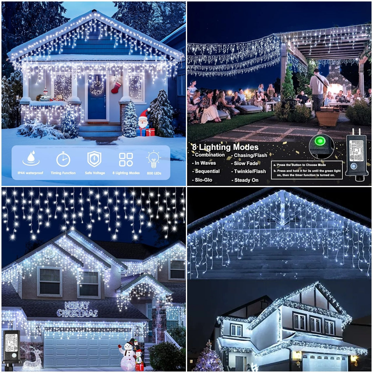 Luz de franja de hielo de 3,5 m y 96 cabezales (luz blanca/COLOR)