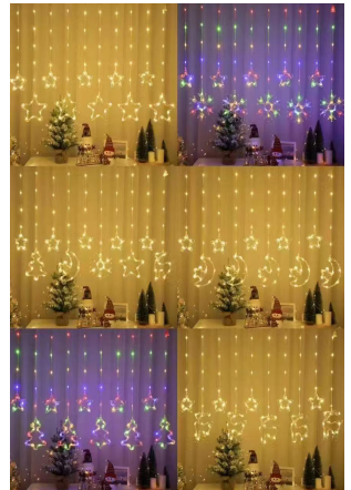 Luces de cortina de cuero LED mixtas3 m, 10 ganchos, con tapón de cola, en bolsa OPP