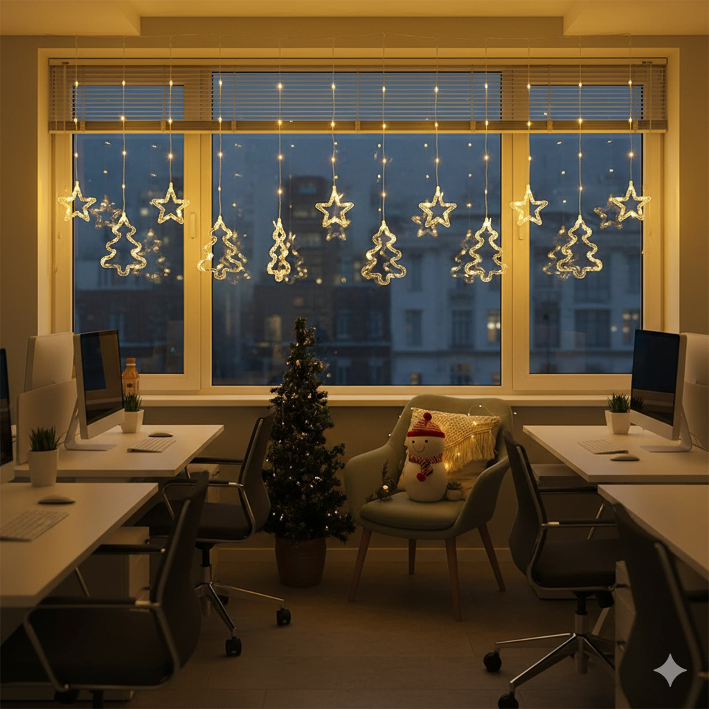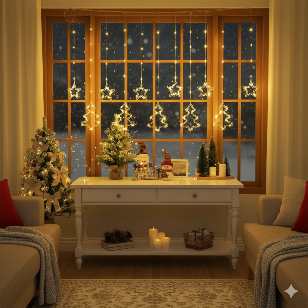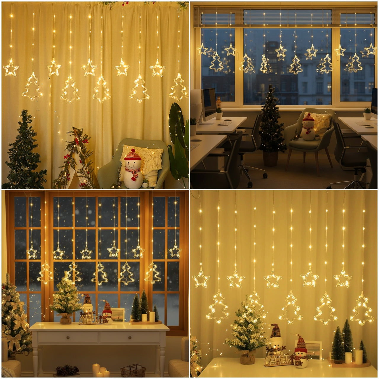 12 luces LED colgantes de cortina de pino Cabezal de 2,5 m y 108 con conector de cola Bolsa de polipropileno