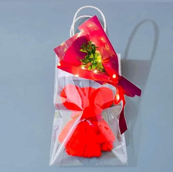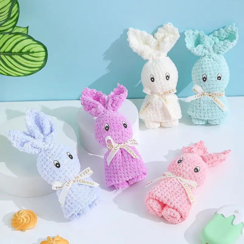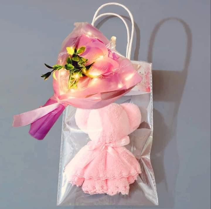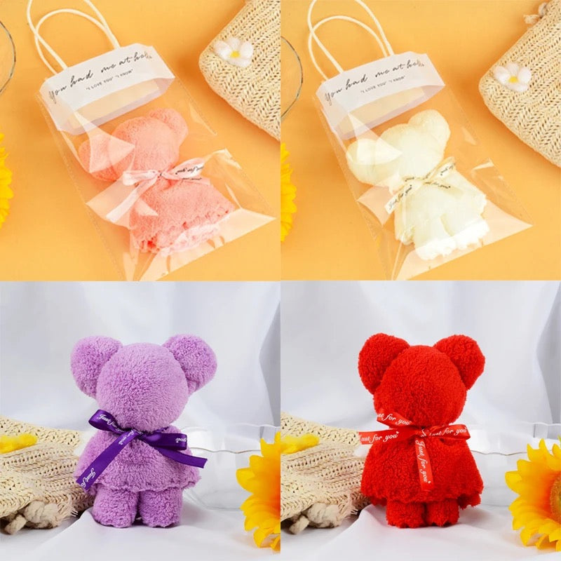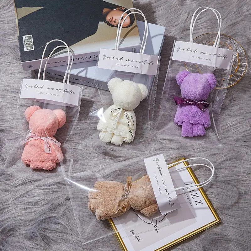 Toalla y ramo de conejo y oso regalo de boda, feliz cumpleaños, Navidad, oso, bolso de mano 2 en uno