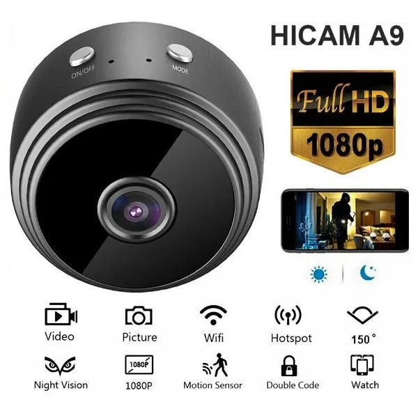 📸 Mini Cámara de Seguridad WiFi A9 1080P HD con Visión Nocturna y Detección de Movimiento