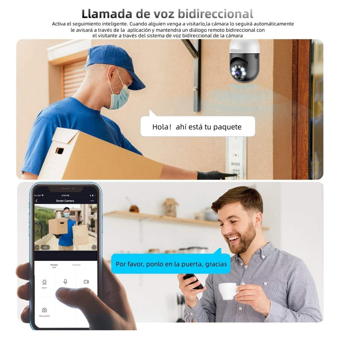 - Audio: Incorpora un micrófono y altavoz para permitir comunicación bidireccional.