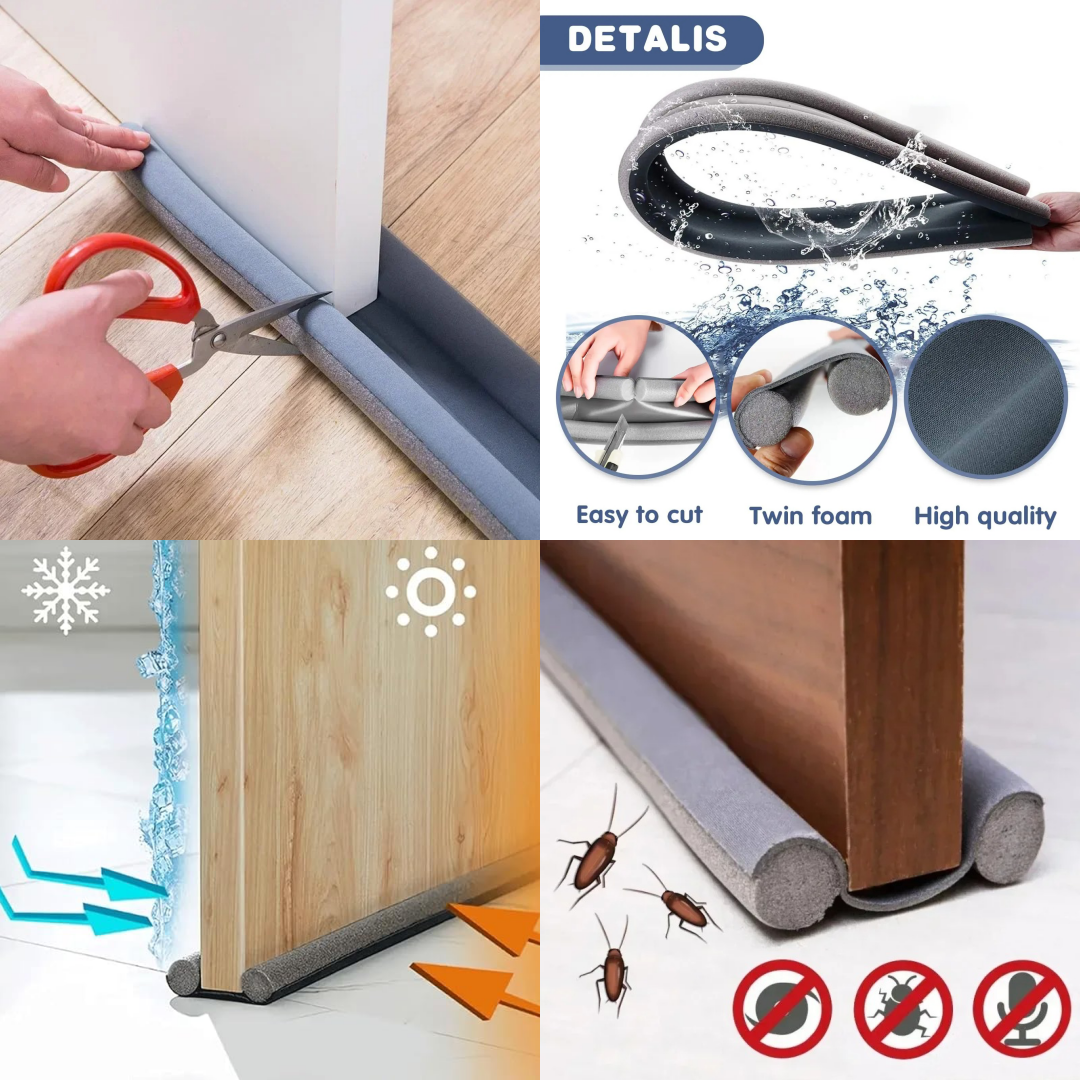 ¡Ponle un fin inmediato a las corrientes de aire, el polvo, el ruido y los molestos insectos! Este sellador de doble rodillo es la manera más fácil y económica de aislar tu casa, ahorrando energía y mejorando tu calidad de vida. Se adapta a cualquier puerta y se instala sin herramientas.