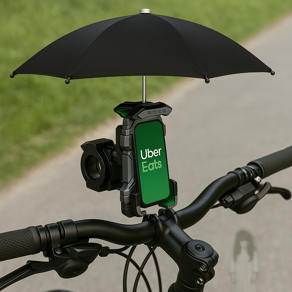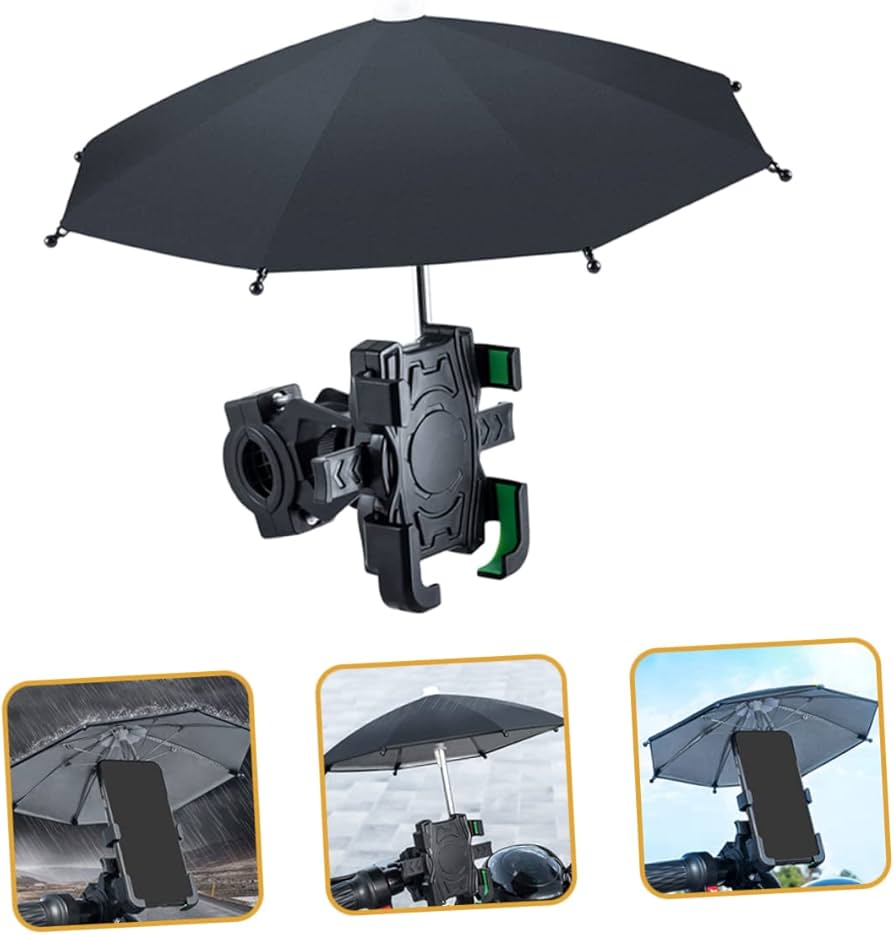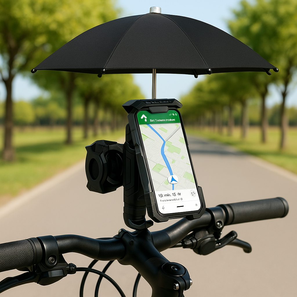 Este innovador soporte para celular con sombrilla integrada es perfecto para quienes hacen entregas o disfrutan de paseos en bicicleta. Protege tu pantalla del sol y la lluvia mientras sigues rutas o recibes llamadas con total comodidad.