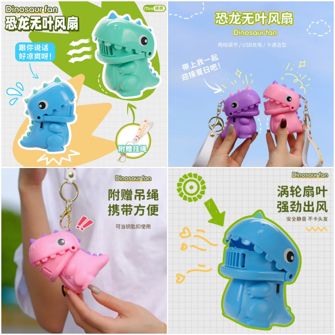 Mini Ventilador Portátil en Forma de Dinosaurio – Recargable y de Bolsillo